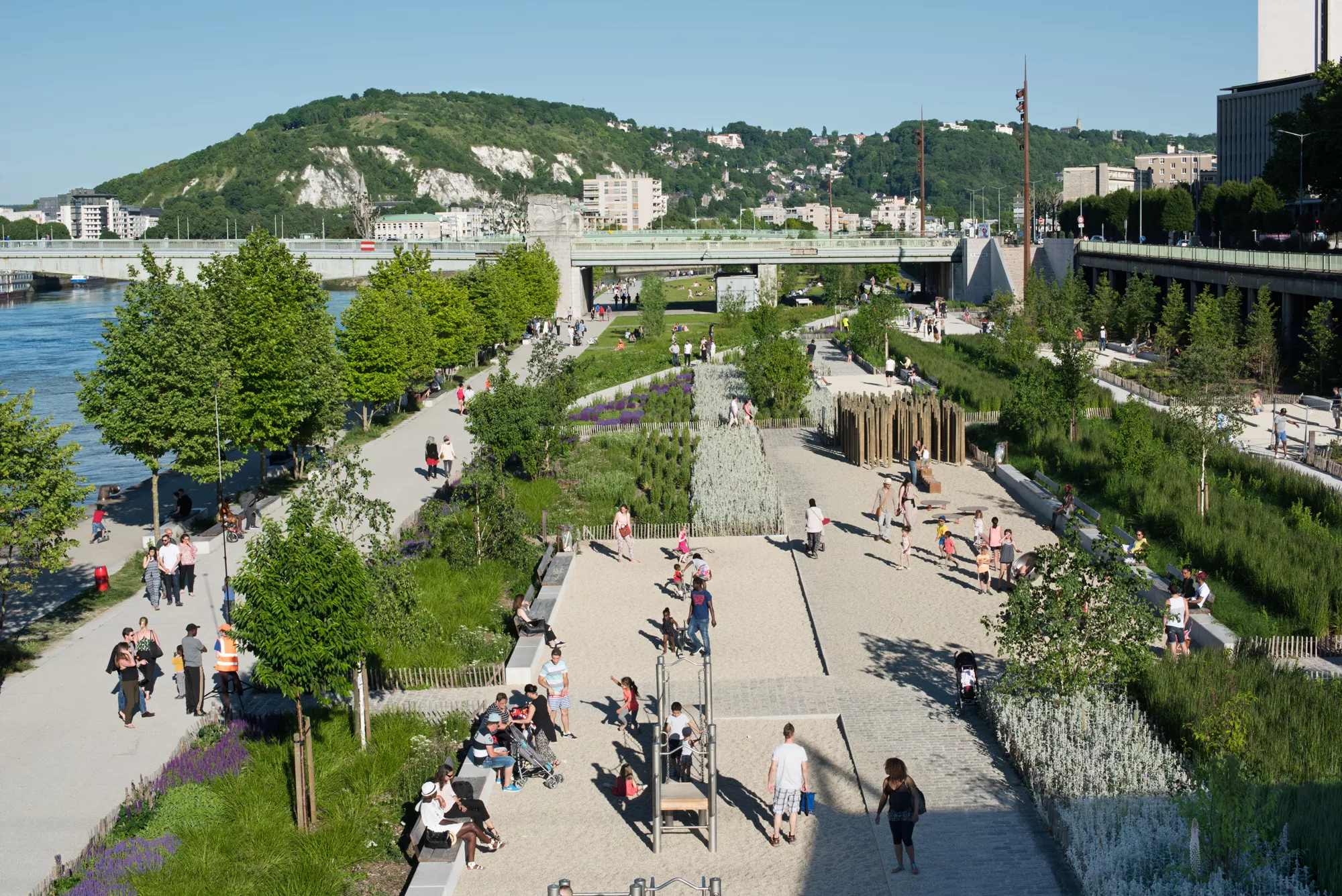 La réflexion menée sur la rive gauche a développé un système de grand parc portuaire qui propose divers usages.