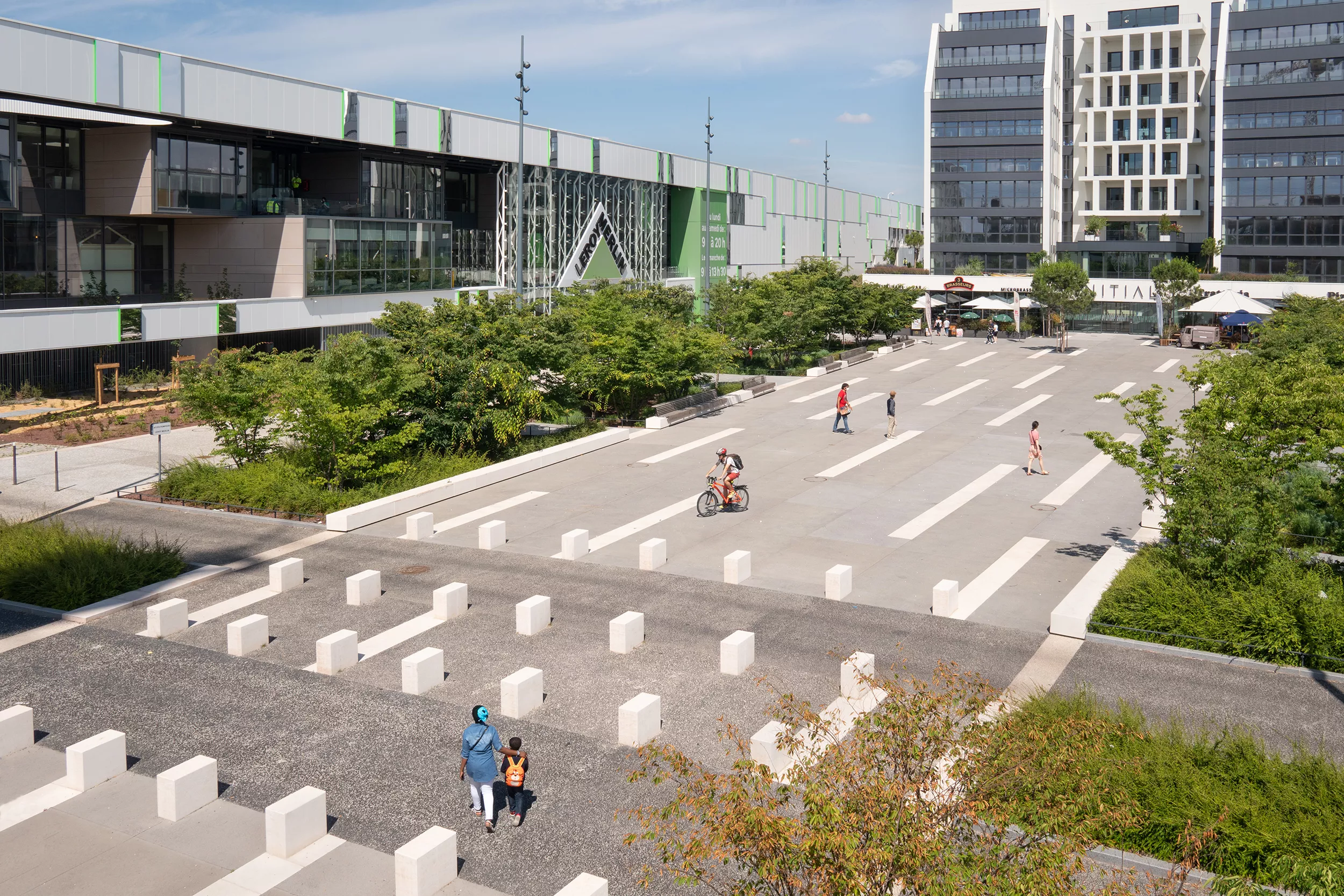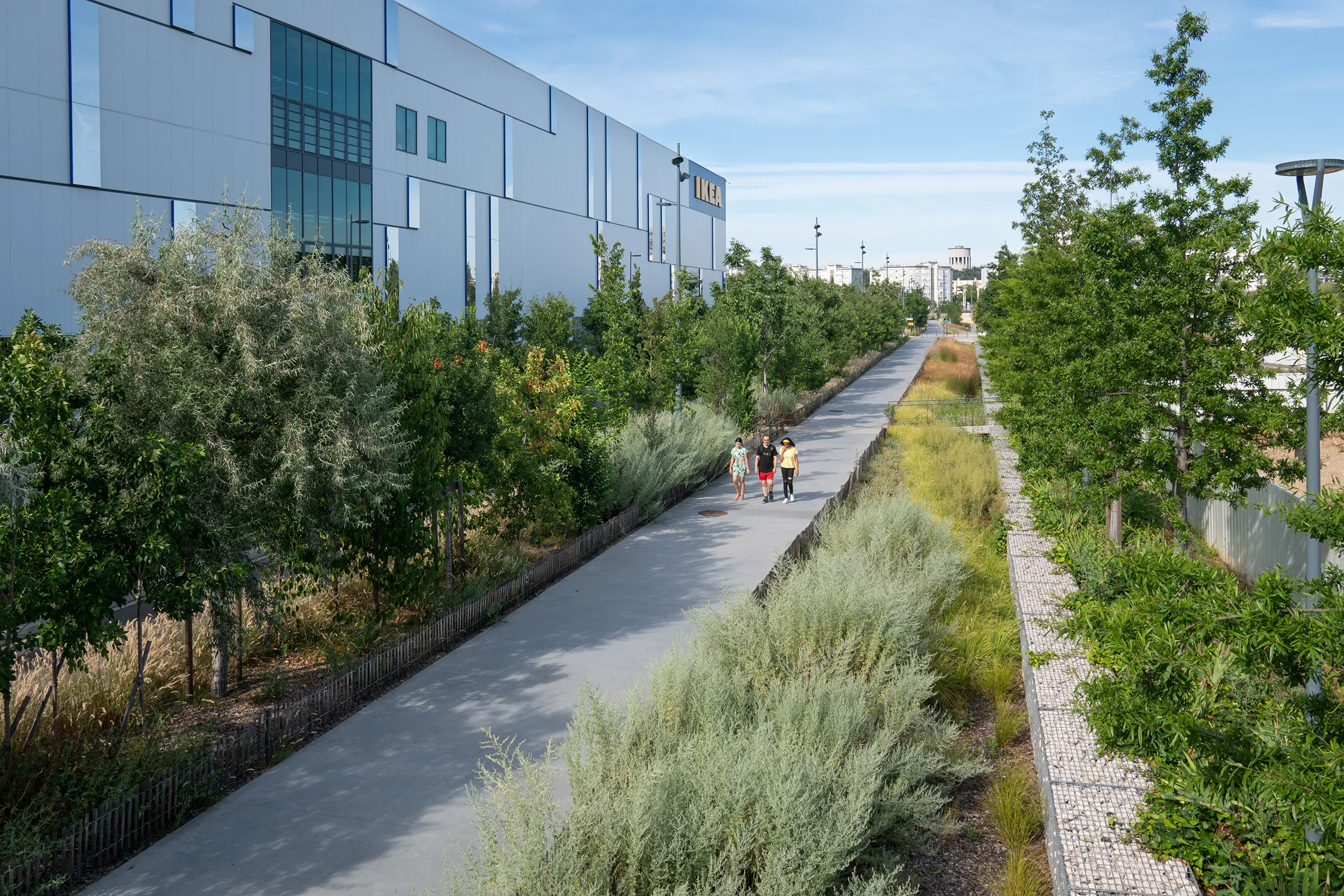 Espaces publics, Infrastructures, Parcs & jardinsUn long sillon boisé entre bureaux, logements et surfaces commerciales