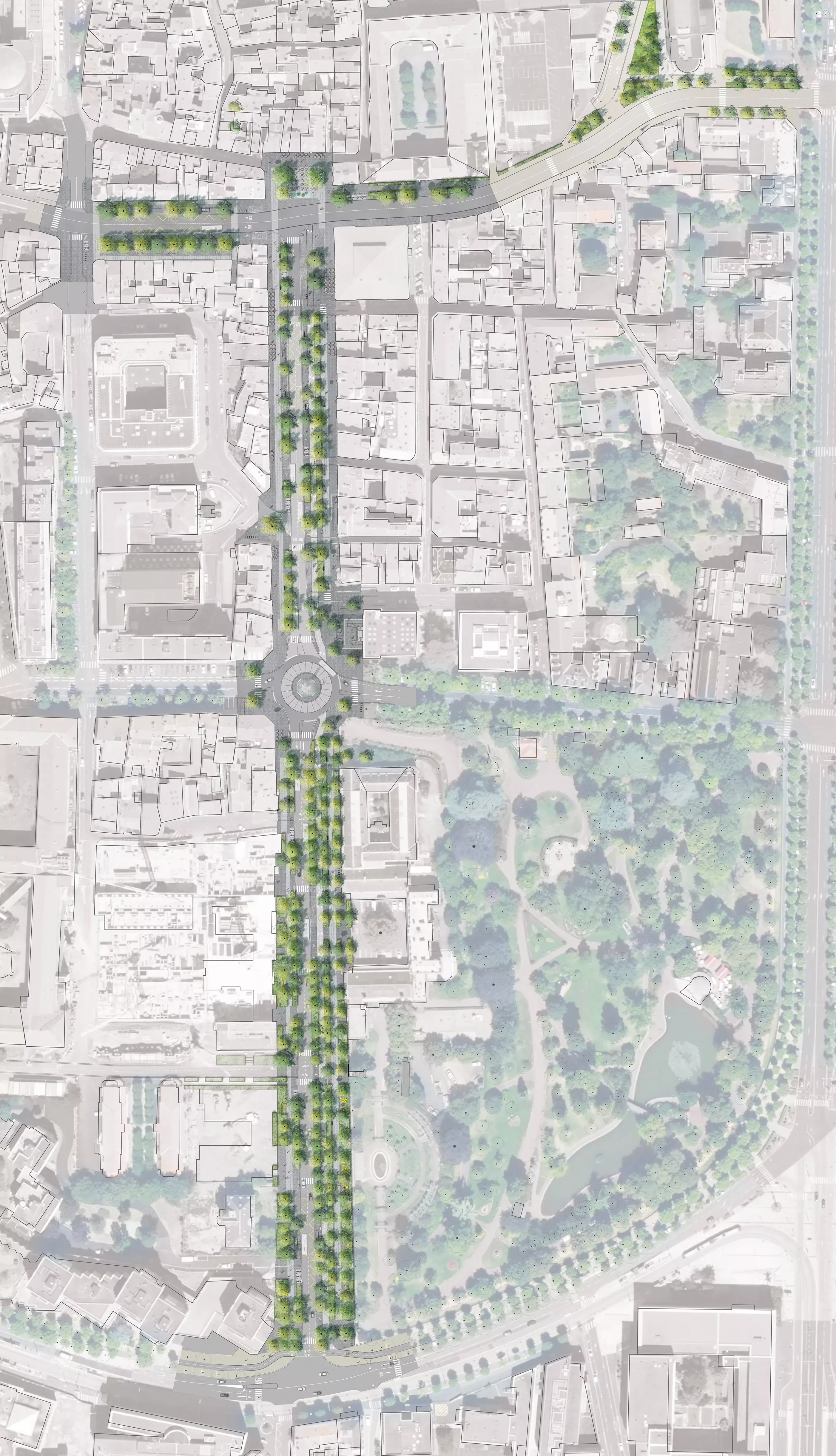 Le projet d’ aménagement des avenues Ballainvilliers et Vercingétorix est impulsé par le passage prochain en centre-ville d’un BHNS, permettant un renouveau ambitieux du centre-ville et de sa périphérie. Larges d’environ 30m et longues de 500m, les avenues ont l’échelle des espaces publics majeurs et témoignent du Cardo et du Decumanus Maximus hérités de la présence romaine. Il s’agit de transformer ces avenues aujourd’hui dédiées à la circulation automobile et au stationnement en une vaste promenade urbaine, un grand cours fertile abondamment planté.