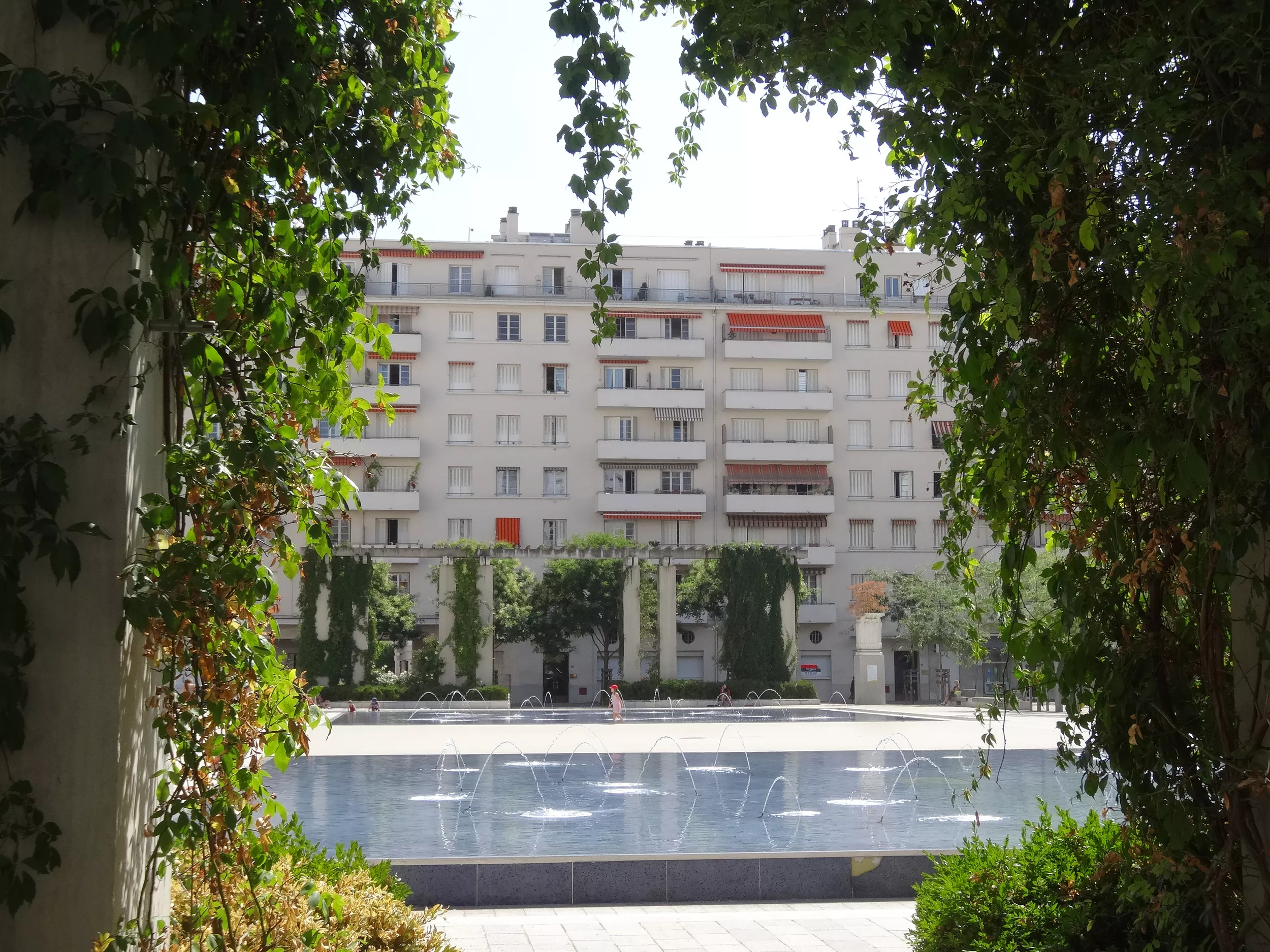 Au pied de l’Hôtel de Ville, les frondaisons des albizias procurent un peu d’ombre et abritent des jardins de cistes et de rosiers parfumés. Au Sud, côté Théâtre National Populaire, un mail plus aérien accueille les déambulations et les événements occasionnels (brocantes, festivals d’été, podium). Au sol, le tracé de lignes parallèles affirme l’ouverture de cette place jardinée sur les rues latérales. Les deux portiques existants sont prolongés pour constituer deux treilles qui cadrent cette vaste pièce urbaine.